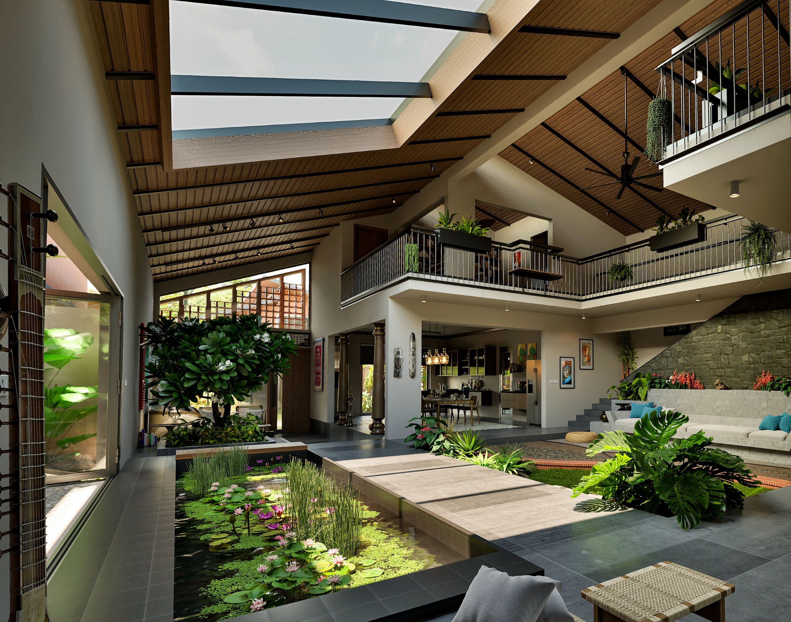 Reclaim the nostalgia of your visits ‘home’ where your home was the space you needed it to be in that moment. An airy fluid space at the center of the home that is flexible to your family’s rhythms. A space that unfurls from its double height courtyard from kitchen to living so that big and small celebrations, quiet contemplation, joint hobbies, big food prep, work or play all are possible with light, air and greenery around. A courtyard style living re-imagined for modern life.
