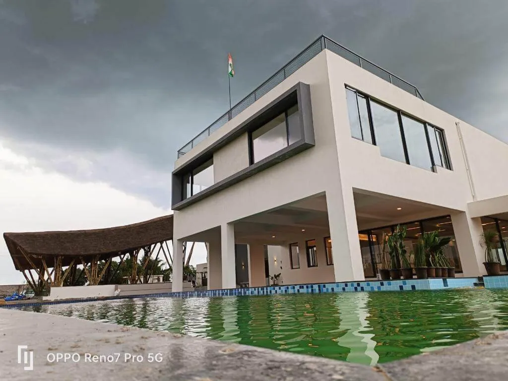 The electrical cables are all underground. The bathrooms in all the villas are designed to have a constant flow of natural day light. We have a dedicated water plant for uninterrupted water supply. We have built a duck pond. We have kids play area, cricket, lawn tennis, indoor badminton court & gym within the community. The club house includes a banquet hall, guest suites, gentlemen room, meditation hall and serves veg and non veg cuisine. There’s a bio swimming pool equipped with a special water and air purifying plant. The movie theatre has the capacity of 24 seats with High speed wifi connection. For the staff working in the community, we have built one bedroom quarters for their accommodation